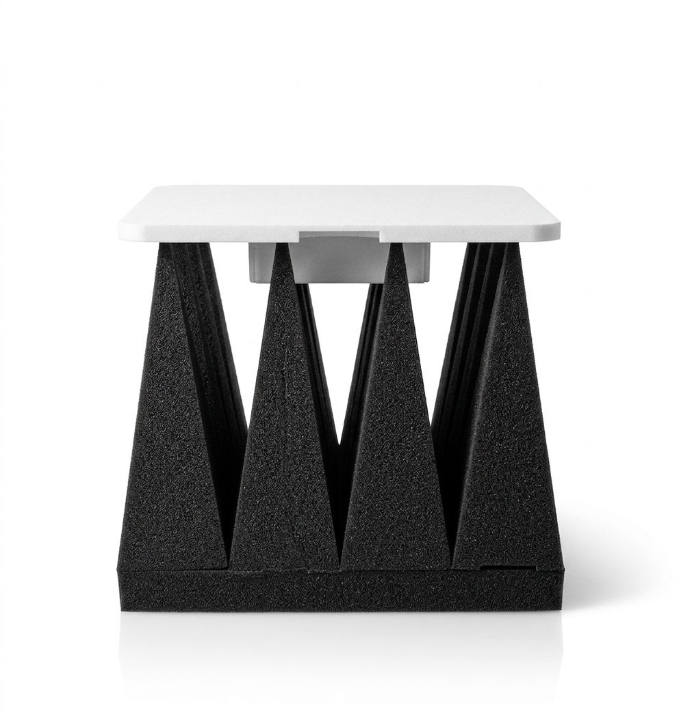 Standard pyramidal absorbers are soft and not load-bearing. For areas requiring foot traffic, we offer Walkway Absorbers (like our DMC-PP-WW series) which are high-density and durable, designed specifically for floors in anechoic chambers.