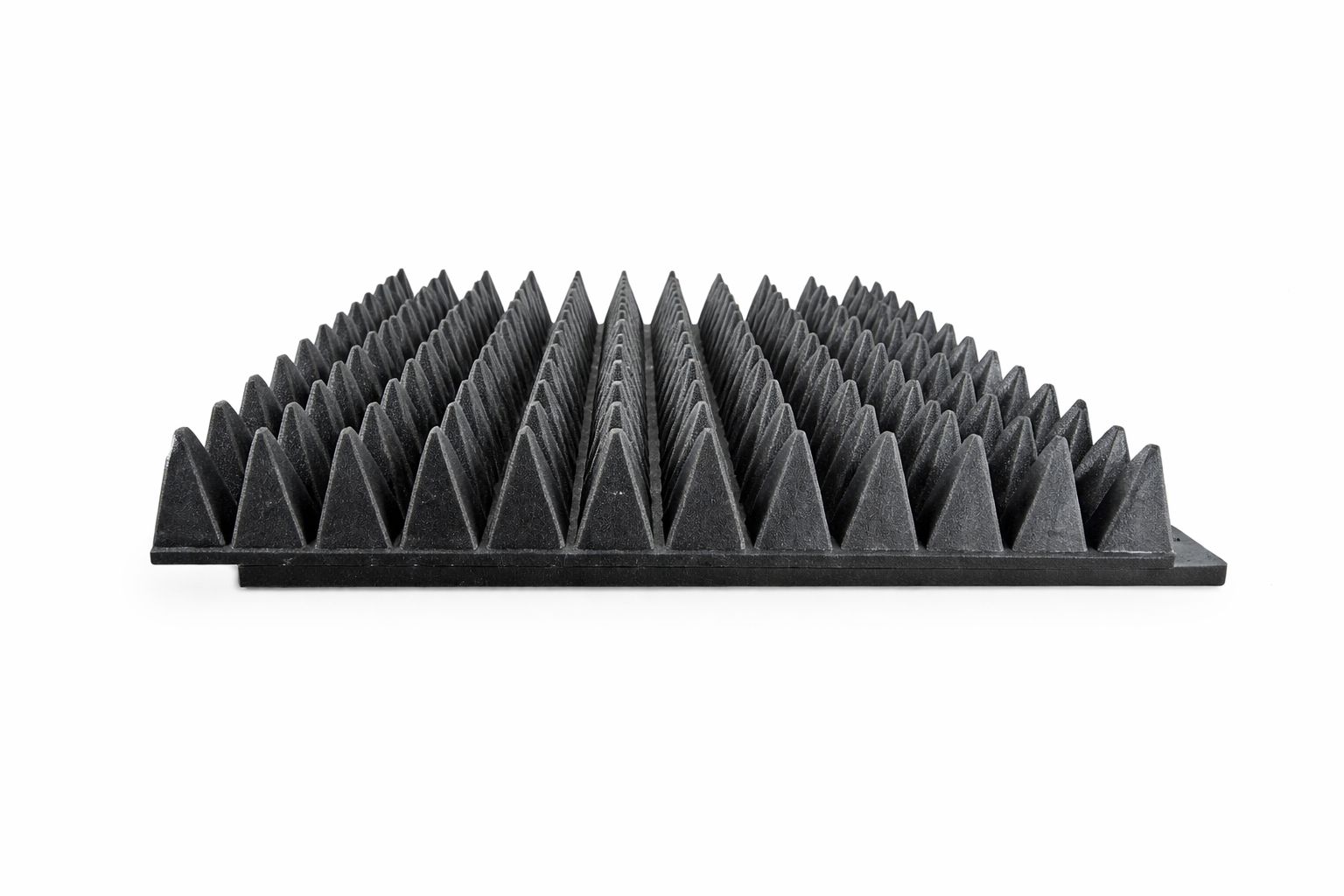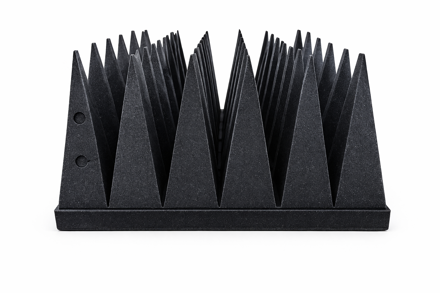 Our absorbers are available in various materials including carbon-loaded foam, ferrites, pyramidal panels, and broadband absorber tiles — crafted for precise performance from low MHz to high GHz frequency ranges.